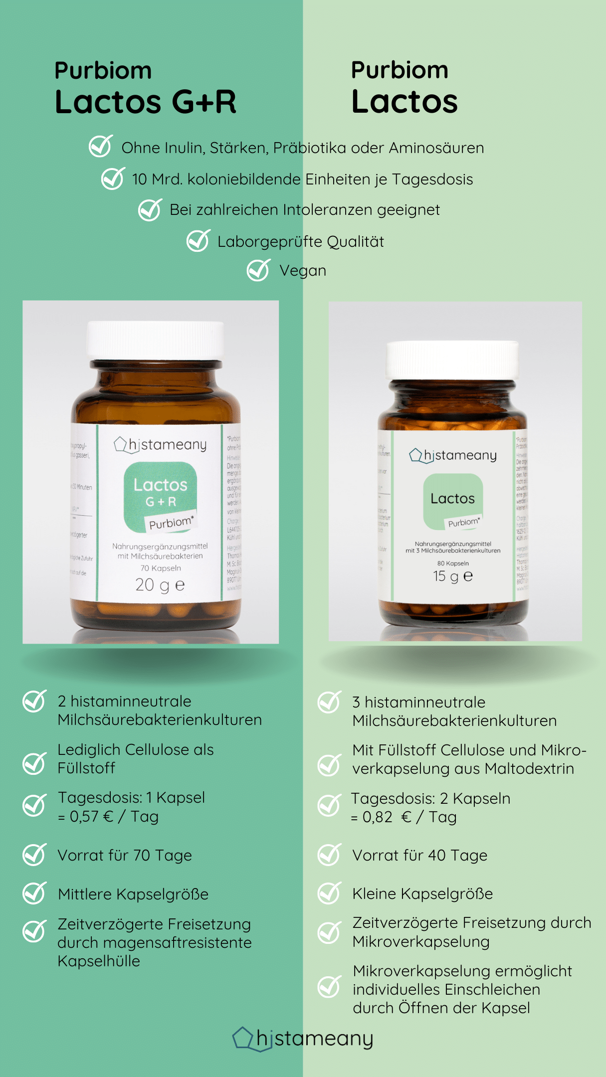 In “Purbiom Lactos G+R” sind keine histaminbildenden Bakterienstämme enthalten.