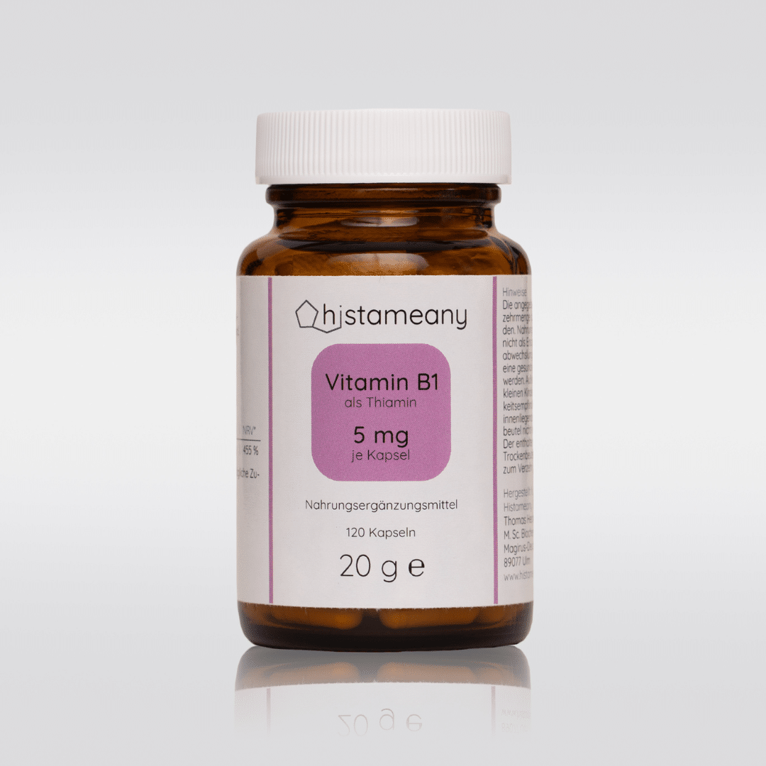 Da Vitamin B1 am Energiestoffwechsel beteiligt ist, empfehlen wir die Einnahme in der 1. Tageshälfte. Die Kapseln können auch geöffnet werden und z.B. in Wasser oder Fruchtsaft eingerührt werden. Personen, die bereits in der Vergangenheit empfindlich auf neue Nahrungsergänzungsmittel reagiert haben, empfehlen wir sich über mehrere Tage bzw. Wochen an die angegebene Tagesdosis heranzutasten. Bei Bedarf kann per E-Mail gerne unser kostenloses Stufen-Einnahmeschema angefordert werden. Hier klicken um Mail an Histameany zu senden.